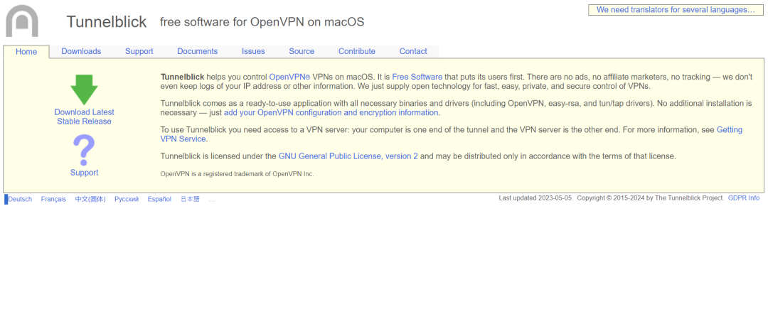 Tunnelblick 是一个基于 OpenVPN 的图形化客户端,提供了基于 SSL 的安全隧道连接。它不仅支持内网穿透,还支持 VPN 连接。