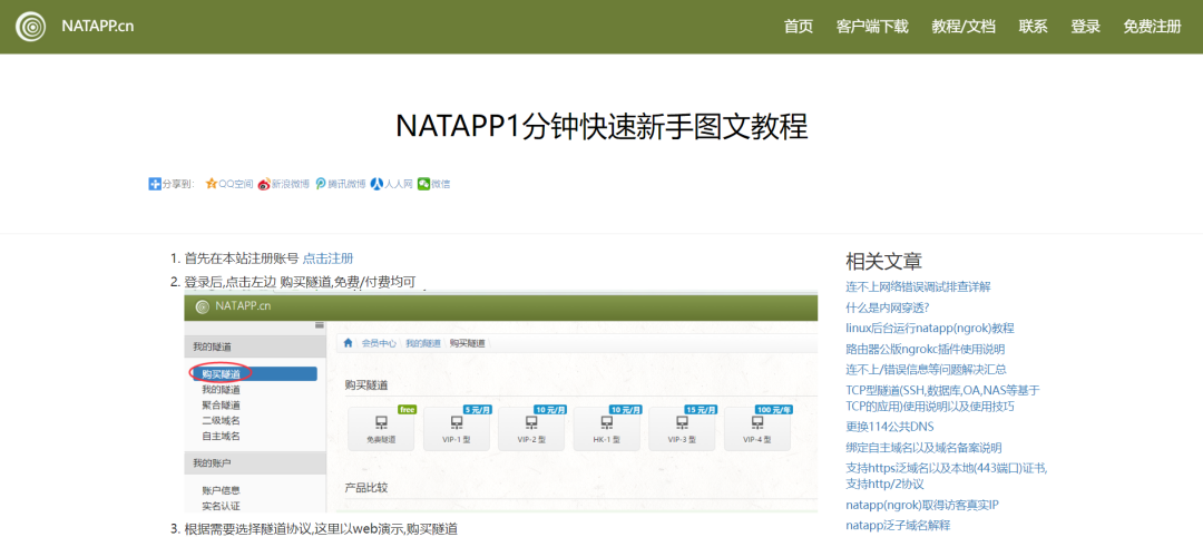 免费套餐:带宽 1Mbps,每月流量 1GB,最多支持 2 条隧道。 -