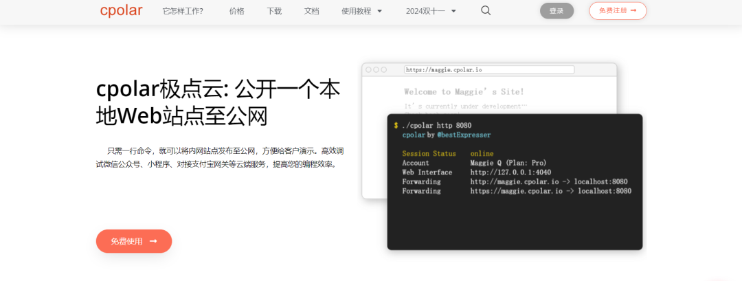 开发阶段暴露本地 Web 应用:非常适合开发者在本地调试时暴露服务进行测试。 -